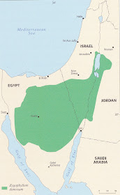[Above (enlarge): Distribution map of the endemic species Zygophyllum dumosum which is confined to Israel, Sinai and Western Jordan[31].]