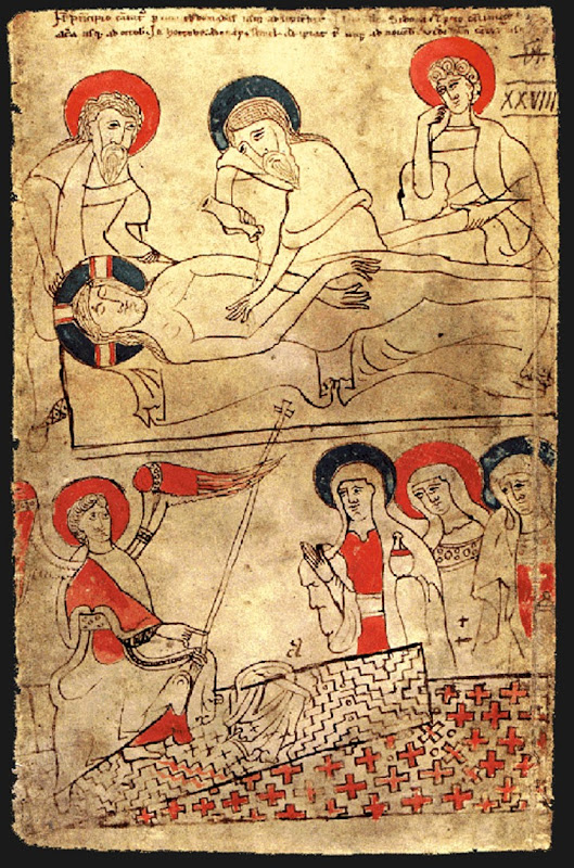 [Above (enlarge) [2]: The Hungarian Pray Codex in my post of 08-Dec-09 linked on this page. There are "eight [indeed eleven see 23Sep17] telling correspondences between the Shroud and ... the Pray Codex"[3]. Some of my other posts on the Pray codex are (recent first): 28Oct18, 04Oct18, 21Aug18, 23Sep17, 21Jun17; 11Apr17; 07Aug16; 07May16; 27Dec15; 27May12; 11Jan10; 08Oct09 & 03Apr08]