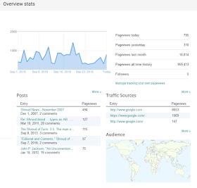 Again, I presume why my "Shroud News - November 2007" had the highest (494) pageviews in September is because it has a photo of the Jospice mattress imprint, which shows in a Google image search of that topic.