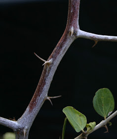 [Above: A branch of a Zizyphus spina-christi shrub showing its long, curved and sharp thorns[32].]