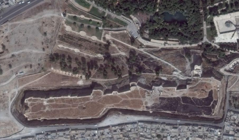 from across the moat while looking eastward, the westernmost tip of the Citadel in Sanliurfa and its tunnel entrance is pictured above." As can be seen in the Google Earth photo below, that place from where