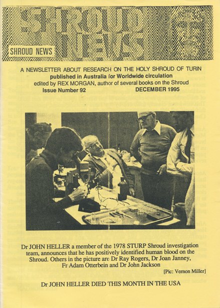 Rex Morgan's Shroud News: My scanning and word-processing of the 118 issues of Rex Morgan's Shroud News, provided by Ian Wilson, and emailing them to Barrie Schwortz, for him to convert to PDFs and add to his online Shroud News archive, continued in December up to issue #92, December 1995. [Right (enlarge)], i.e ~78% completed. Issues in that archive are still up to #84, August 1994.