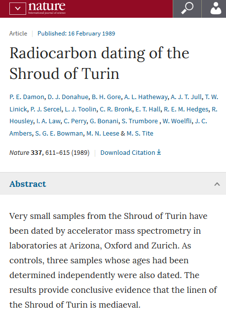 NATURE - "The results for the three control samples agree well with previous radiocarbon measurements and/or historical dates"