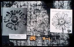 [Above: One of Scheuermann's corona discharge images of a Chrysanthemum coronarium flower (left), a Chrysanthemum coronarium flower image visible on the Shroud (centre) and a drawing of a Chrysanthemum coronarium flower in Flora Palaestina (right)[10]]