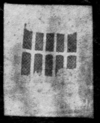 [Above (enlarge[46].): Niépce's "View from the Window at Le Gras" (1826-27), "the oldest surviving camera photograph"[47].]
