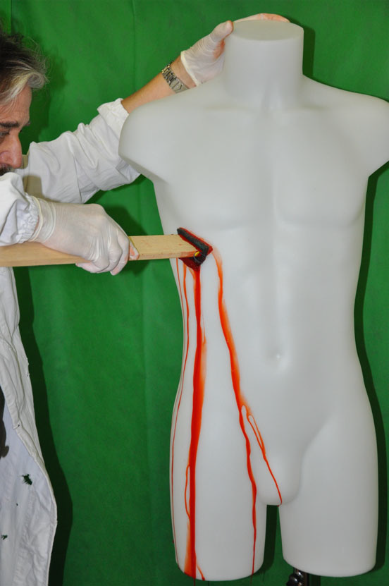[Above (enlarge): Linen Shroud model covering a volunteer's body[72].]